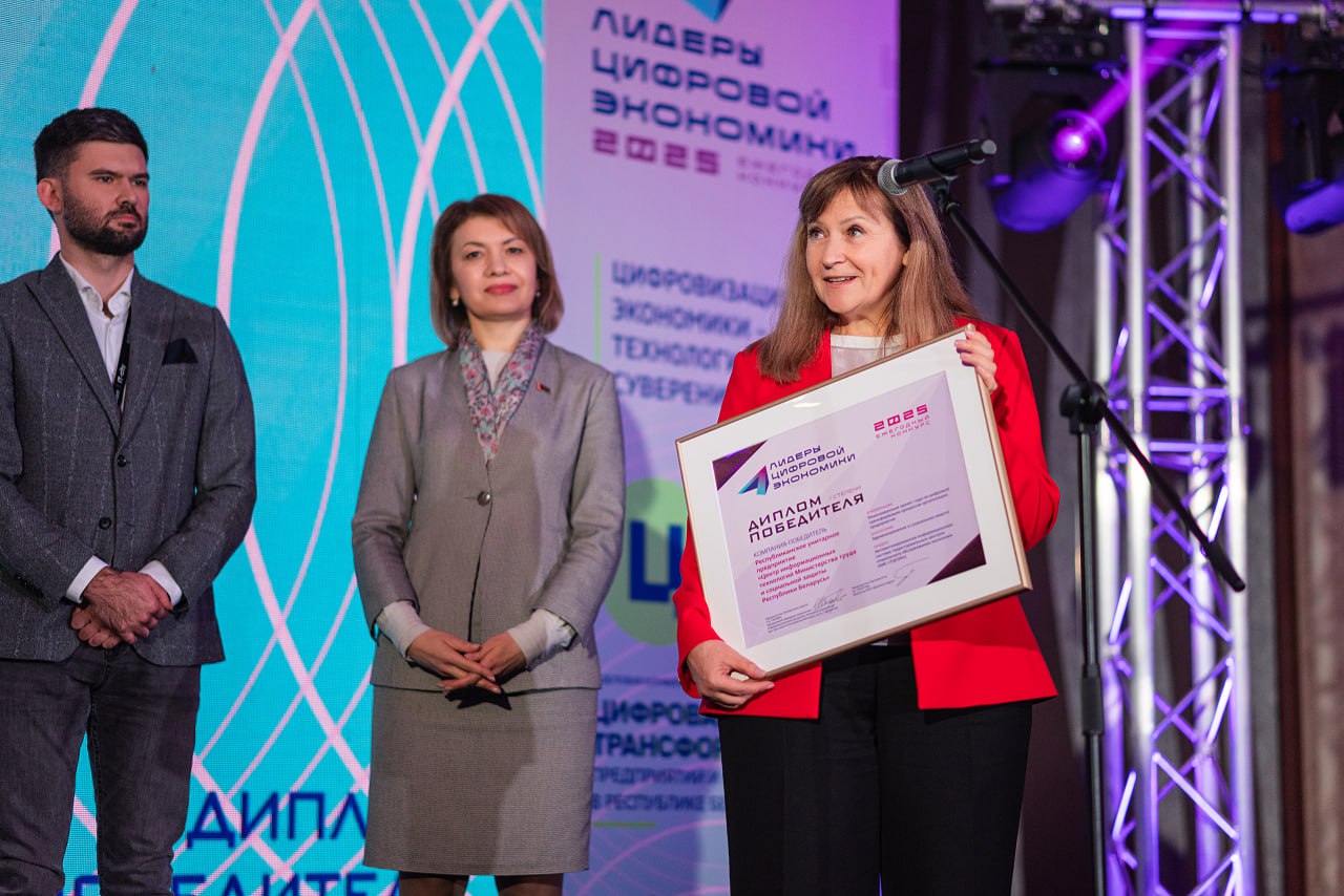 РУП «Центр информационных технологий Министерства труда и социальной защиты Республики Беларусь» одержало победу в конкурсе «Лидеры цифровой экономики Республики Беларусь» и получило диплом победителя первой степени в номинации «Реализованный проект года по цифровой трансформации процессов организации, предприятия» «Здравоохранение и социальная защита».